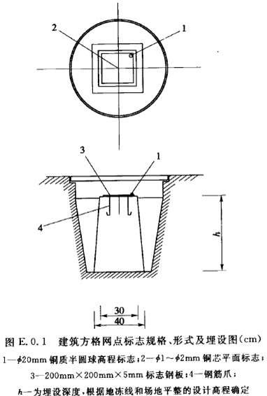 E.0.2 方格網(wǎng)點(diǎn)平面標(biāo)志采用鑲嵌銅芯表示,銅芯直徑應(yīng)為1~2mm。大牛工程師