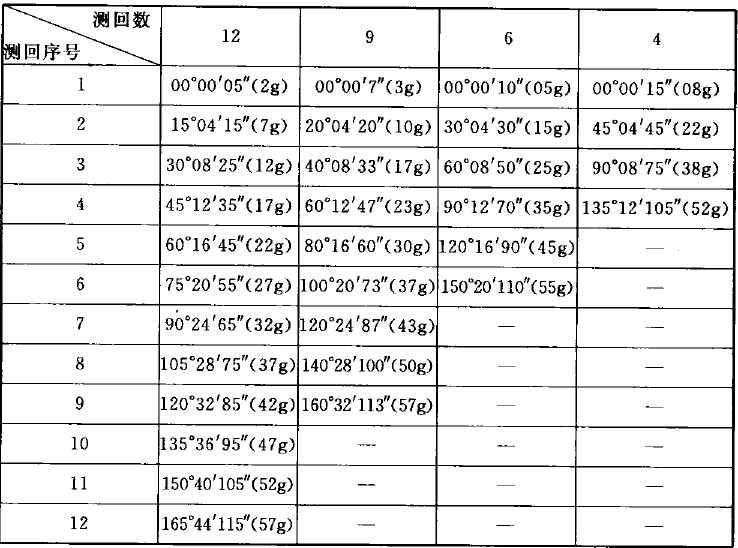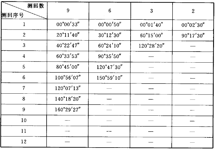 表C.0.4-2 2"級光學(xué)經(jīng)緯儀方向觀測度盤配置表