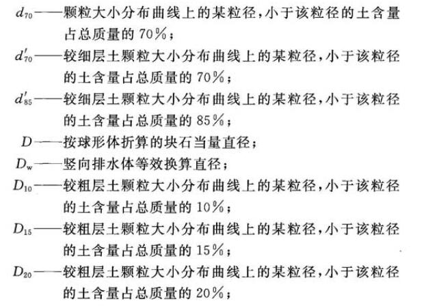 2當(dāng)排水豎井采用擠土方式施工時,應(yīng)計入涂抹對土體固結(jié)的影響。當(dāng)豎井的縱向通水量qw與天然土層水平向滲透系數(shù)屜。的比值較小,且長度又較長時,尚應(yīng)計入井阻影響。徑向和一級或多級等速加載條件下的平均固結(jié)度可按下列公式計算: