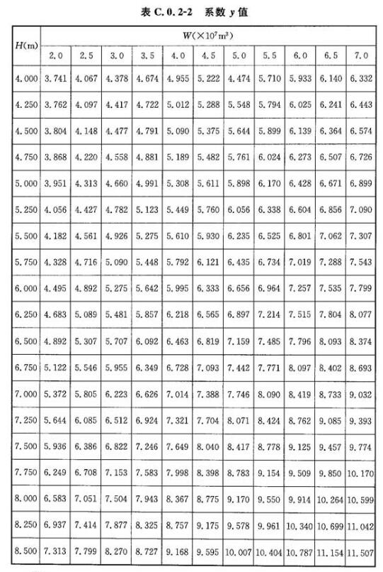 1根據(jù)本工程的H和W,查表C.0.2-1、表C.0.2-2得x、y值;