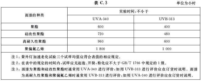 C.3 紫外燈老化試驗時限應符合表C.3的規(guī)定。