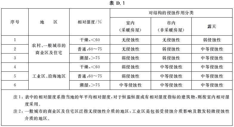 附錄D 外界條件對冷彎薄壁型鋼結構的侵蝕作用分類