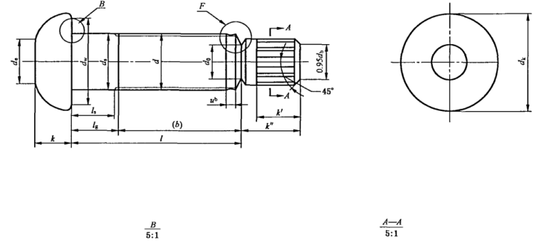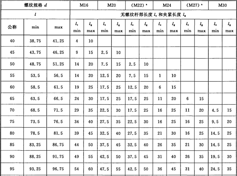 螺栓尺寸應(yīng)符合圖2及表1~表3的規(guī)定。