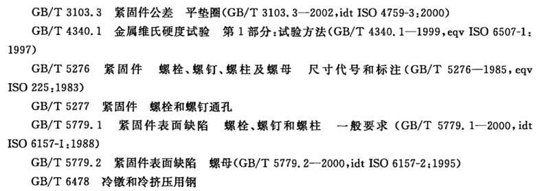 螺栓、螺母、墊圈的其他尺寸及形位公差應(yīng)符合GB/T 3103.1或GB/T 3103.3有關(guān)C級(jí)產(chǎn)品的規(guī)定。
