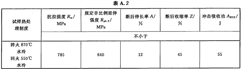 A.2 采用直徑為25 mm的試樣毛坯,經(jīng)熱處理后的機(jī)械性能應(yīng)符合表A.2的規(guī)定。