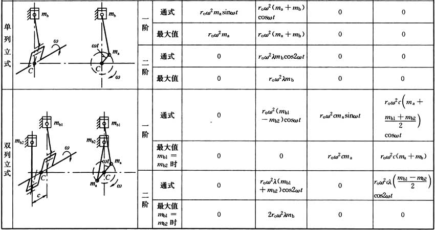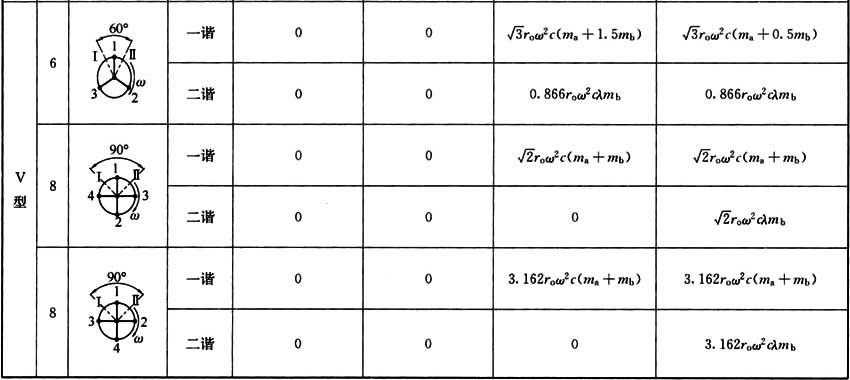 3 立式6缸和V型12缸及其以上機(jī)型的慣性力均已平衡,各項擾力和擾力矩均為0,未列入表中。