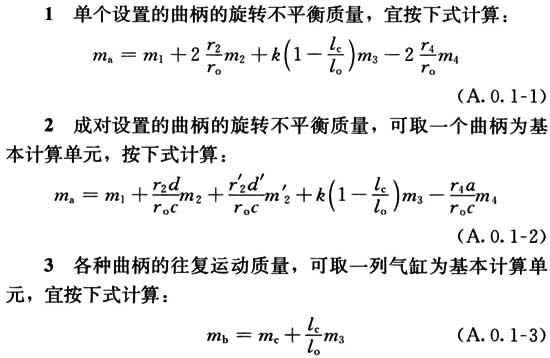 A.0.1 往復(fù)式機(jī)器曲柄—連桿—活塞機(jī)構(gòu)各部分的運動質(zhì)量(圖A.0.1-1、圖A.0.1-2),宜按下列公式計算: