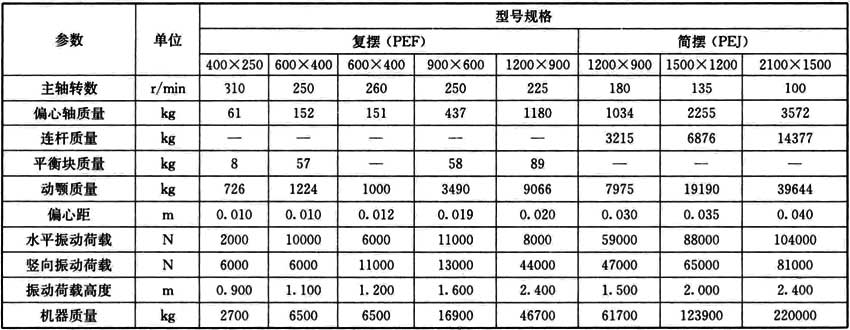 表C.0.1 顎式破碎機(jī)動力參數(shù)及振動荷載