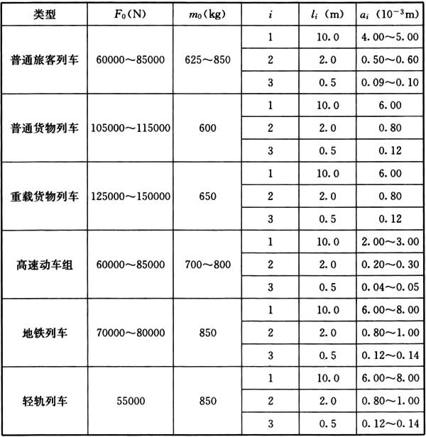 m0——列車簧下質(zhì)量(kg),宜按表13.0.2取值;