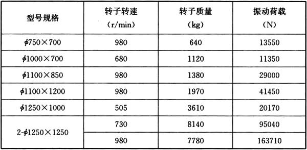 注:表中振動荷載值所采用的偏心距e0為2mm。