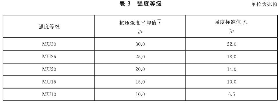 磚的強度等級分為五級:MU30、MU25、MU20、MU15、MU10。