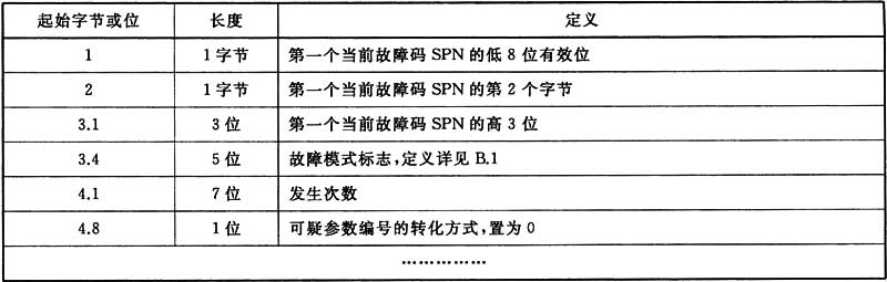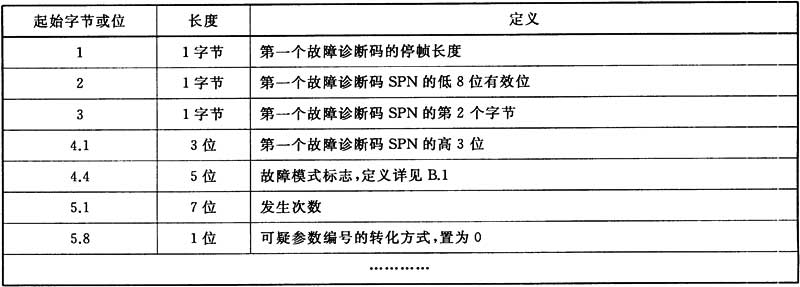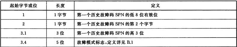 診斷故障代碼(DTC)由4個獨立域構成,這4個部分見表B.1: