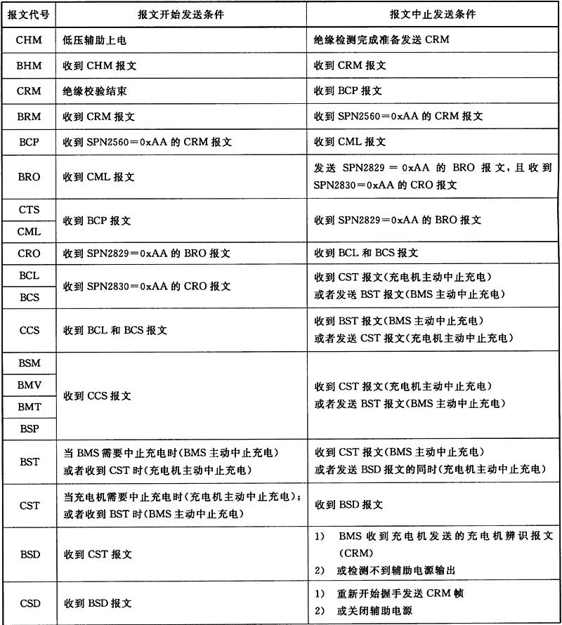 各類報文的開始發(fā)送條件和中止發(fā)送條件見表D.1。