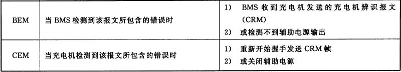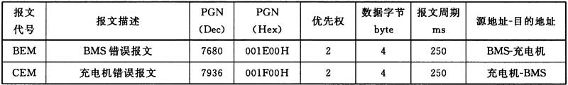 在整個充電階段,當BMS或充電機檢測到存在錯誤時,發(fā)送錯誤報文。錯誤報文應符合表7的要求。