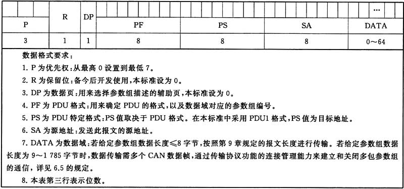 采用本標準的設備應使用CAN擴展幀的29位標識符,具體每個位分配的相應定義應符合SAE J1939-21:2006中的相關規(guī)定。