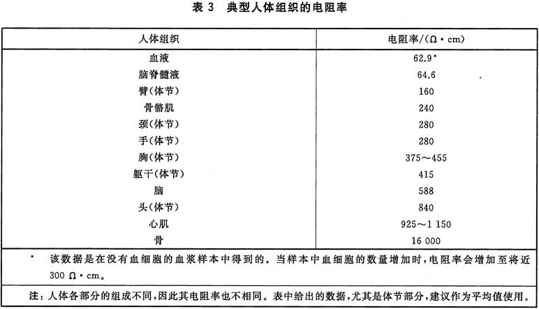 表3給出了在正常體溫下人體不同部分的電阻率近似值[22],[23]。這些數(shù)據(jù)可用于低頻交流和直流電流。