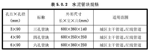 5.0.2水泥管塊的規(guī)格和使用范圍應(yīng)符合表5.0.2的要求。