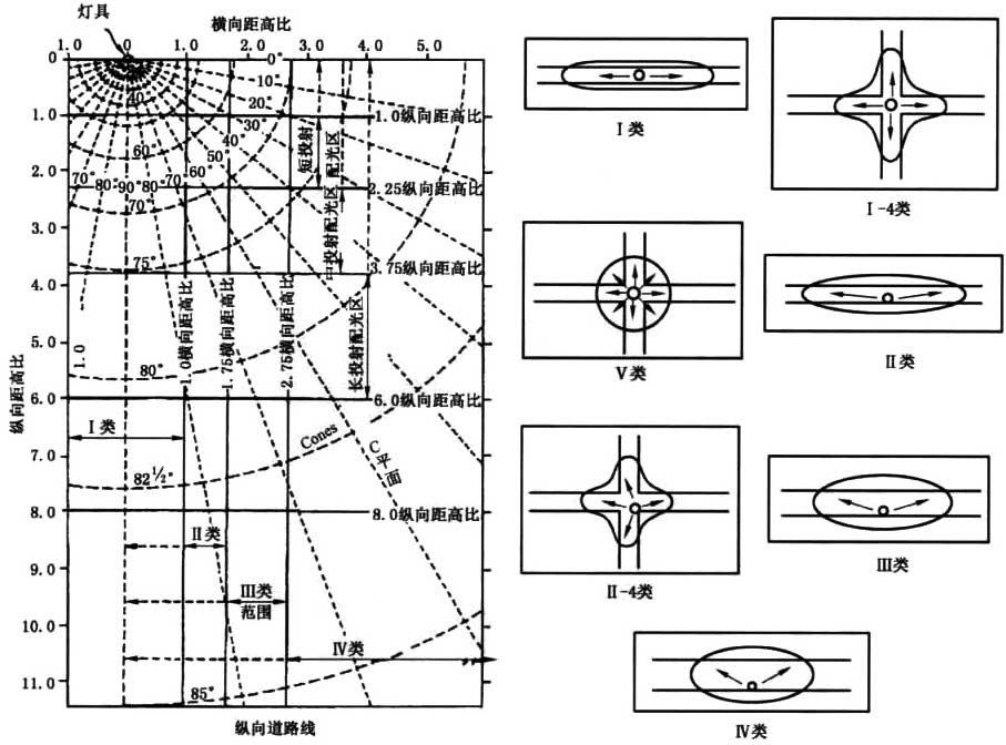 道路照明燈具的光分布類型參考戶外燈具的相關(guān)規(guī)定。