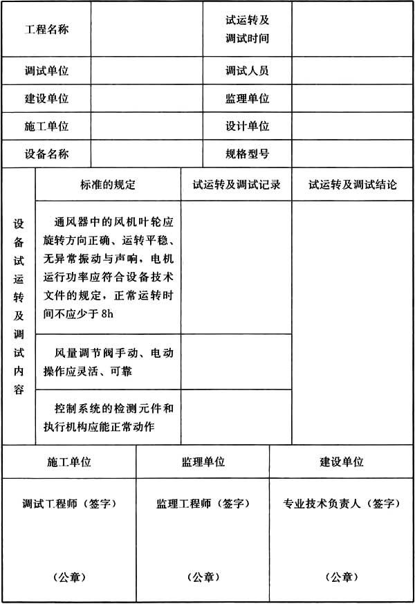B.0.3 設(shè)備試運(yùn)轉(zhuǎn)及調(diào)試記錄應(yīng)符合表B.0.3 的規(guī)定。