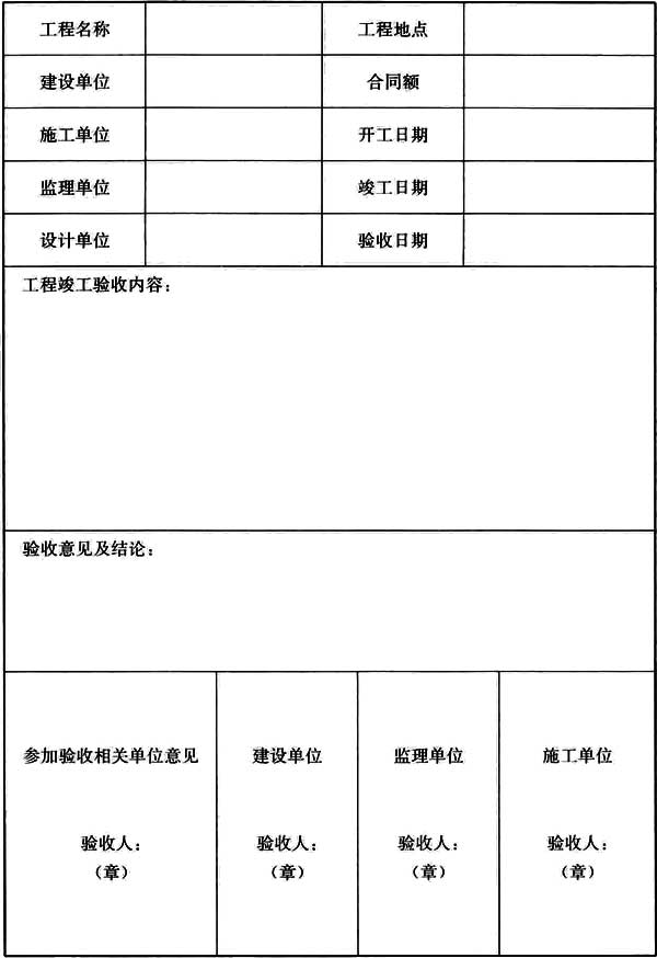 表 B.0.5 工程竣工驗(yàn)收報(bào)告單