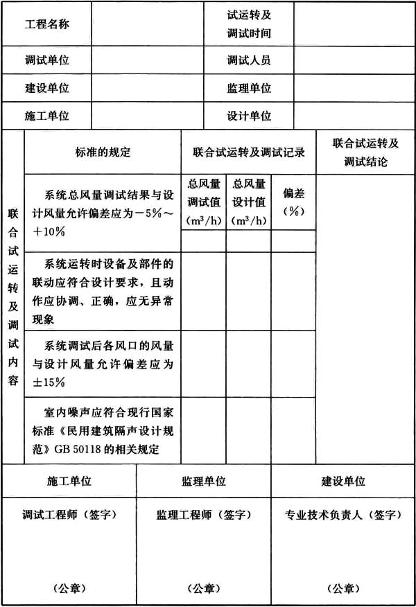 表 B.0.4 聯(lián)合試運(yùn)轉(zhuǎn)及調(diào)試記錄