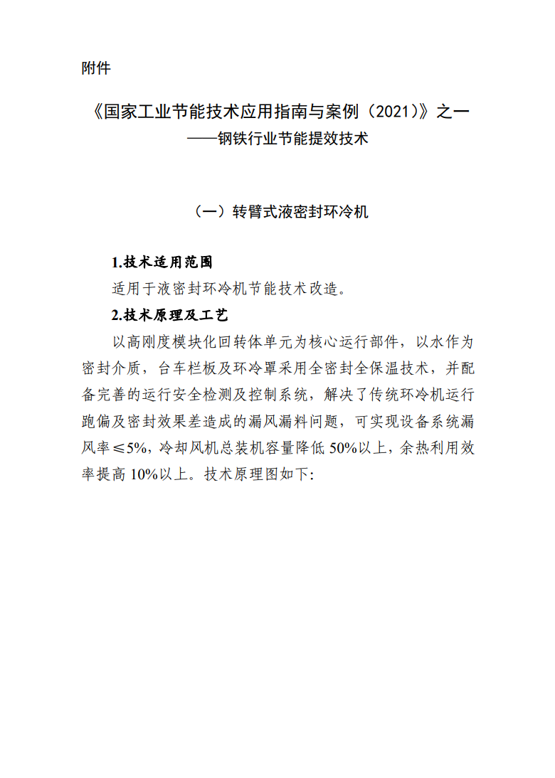 工信部官網(wǎng)公布《國家工業(yè)節(jié)能技術(shù)應(yīng)用指南與案例(2021)》第一部分,鋼鐵行業(yè)節(jié)能提效技術(shù)詳情,3項(xiàng)節(jié)能技術(shù)入選,分別為轉(zhuǎn)臂式液密封環(huán)冷機(jī),DP系列廢鋼預(yù)熱連續(xù)加料輸送成套設(shè)備和高溫工業(yè)窯爐紅外節(jié)能涂料技術(shù)。詳情如下: