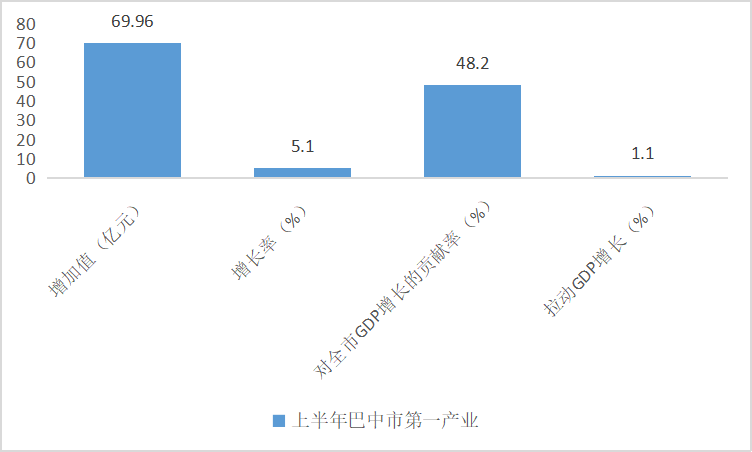 上半年,巴中市第一產(chǎn)業(yè)增加值為69.96億元,增長5.1%,增速較一季度上升1.1個百分點,對全市GDP增長的貢獻率為48.2%,拉動GDP增長1.1個百分點。資料共享_規(guī)劃綱要_模版下載
