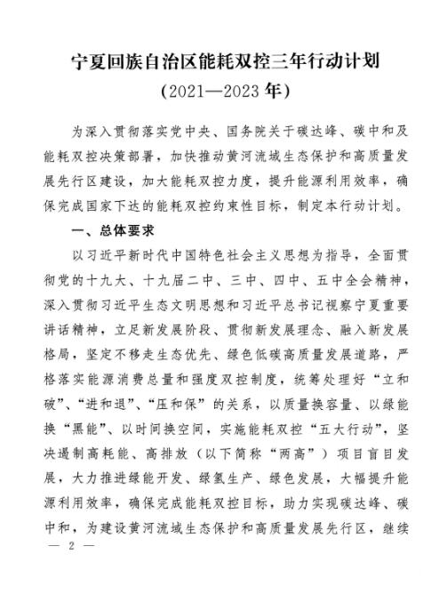 2021年|寧夏回族自治區(qū)能耗雙控三年行動(dòng)計(jì)劃(2021——2023年)