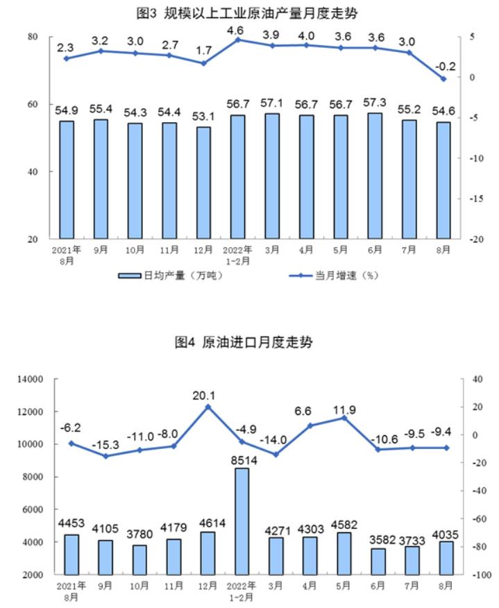1—8月份,生產(chǎn)原油13694萬(wàn)噸,同比增長(zhǎng)3.2%。進(jìn)口原油33018萬(wàn)噸,同比下降4.7%。
