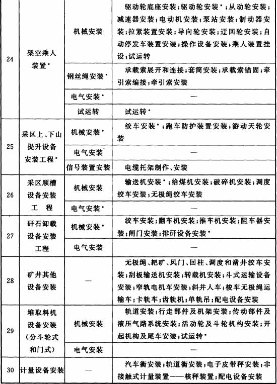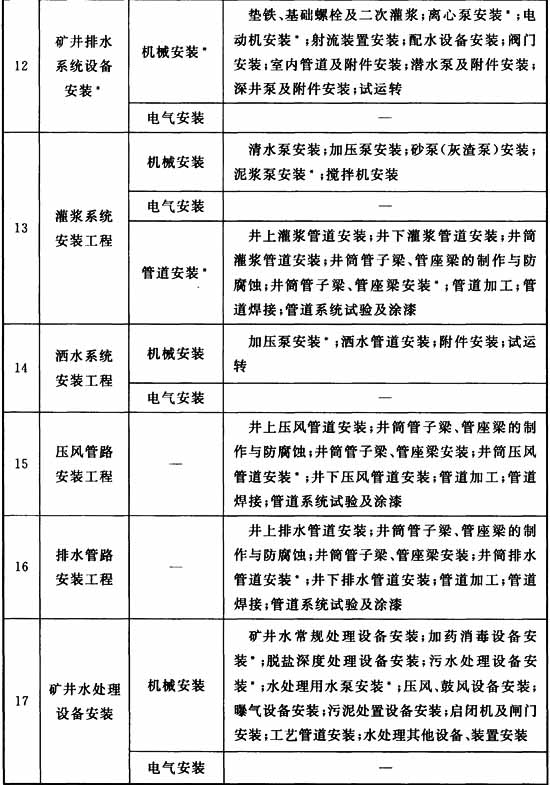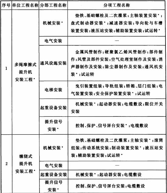 表A 煤礦設(shè)備安裝工程分項、分部及單位工程名稱