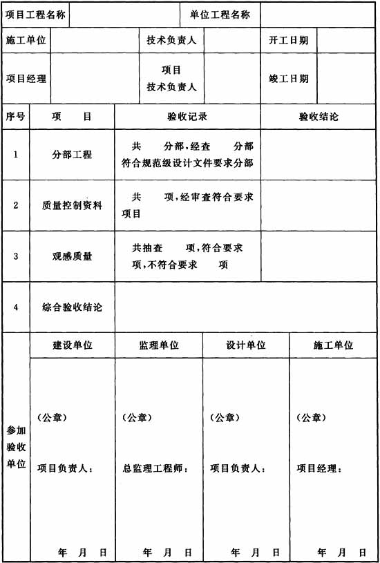 3 單位工程質(zhì)量驗收記錄應(yīng)按本規(guī)范附錄表B-3進(jìn)行;