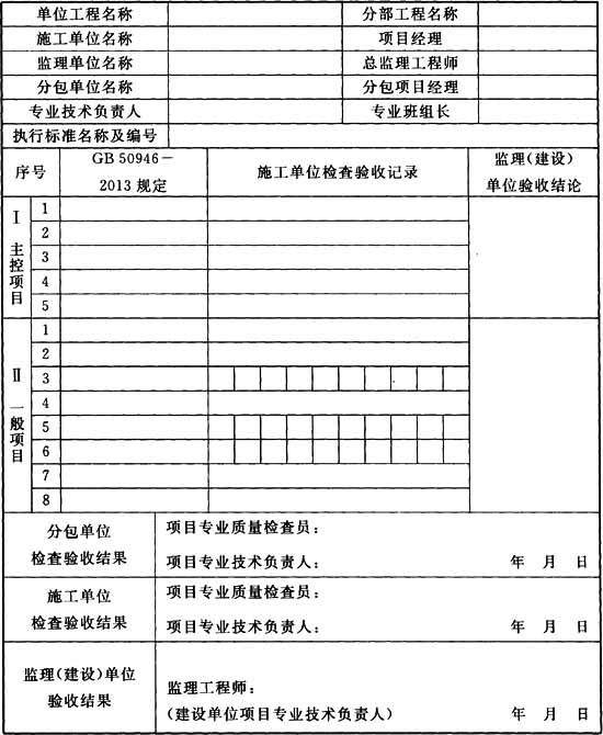 1 分項工程質(zhì)量驗收記錄應(yīng)按本規(guī)范附錄表B-1進(jìn)行;