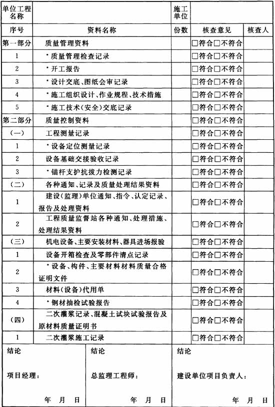 表B-6 煤礦設(shè)備安裝單位工程質(zhì)量控制資料核查記錄