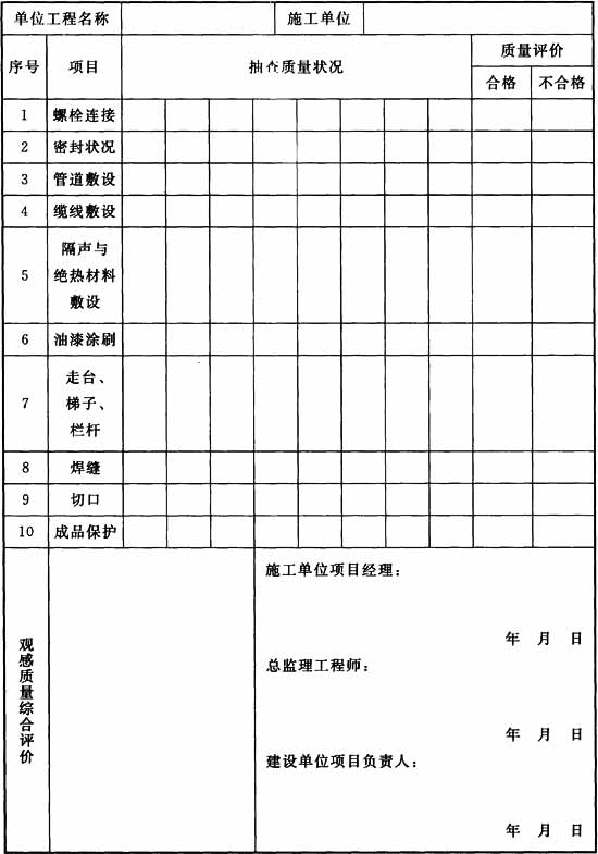表B-7 煤礦設(shè)備安裝單位工程觀感質(zhì)量檢查記錄
