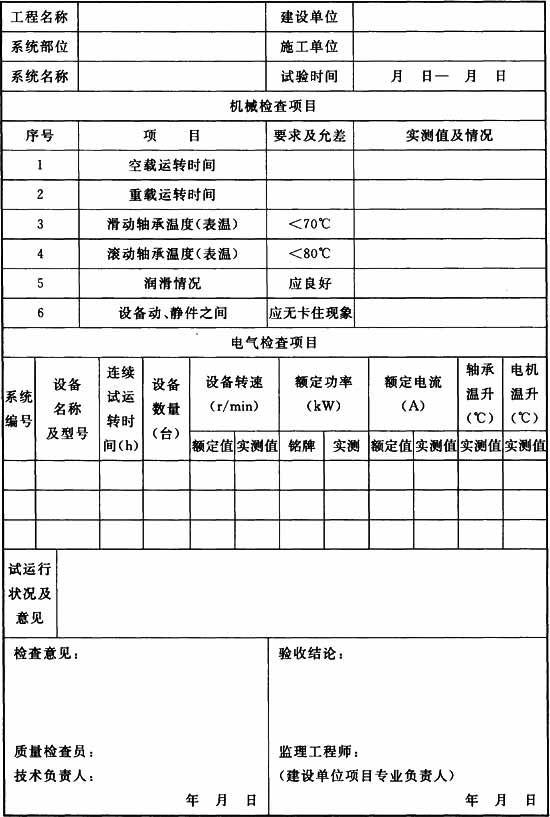 4 設(shè)備空(負(fù))載試運轉(zhuǎn)記錄應(yīng)按本規(guī)范附錄表B-4、表B-5進(jìn)行;