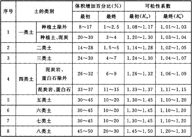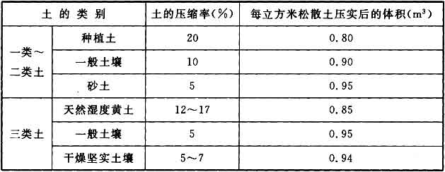 注:表中土的壓縮率:土的壓縮性,為挖土或借土回填時,土經(jīng)填壓以后,土體積被壓縮的性能。