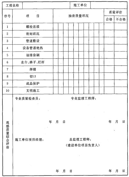 附錄A 空分制氧設(shè)備工程安裝分項(xiàng)工程質(zhì)量驗(yàn)收記錄表