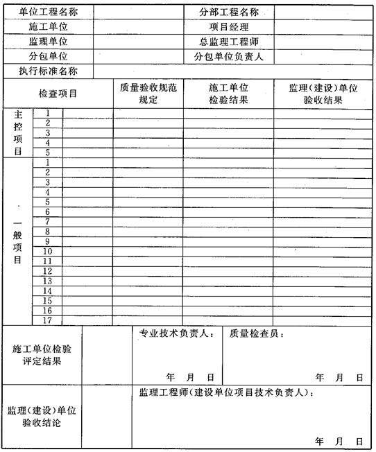 1 分項(xiàng)工程質(zhì)量驗(yàn)收記錄應(yīng)按本規(guī)范附錄A進(jìn)行;