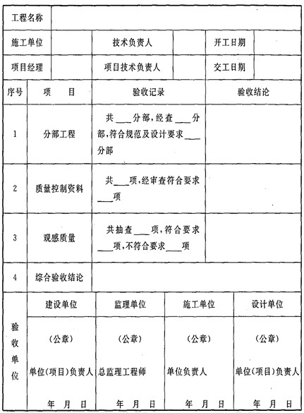 表C.0.1 單位工程質(zhì)量驗(yàn)收記錄