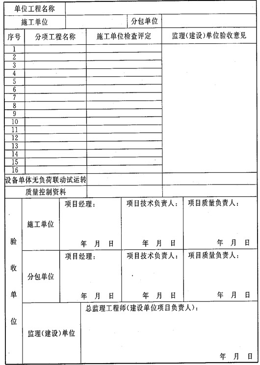 4 建設(shè)單位收到工程驗(yàn)收?qǐng)?bào)告后,應(yīng)由建設(shè)單位(項(xiàng)目)負(fù)責(zé)人組織施工(含分包單位)、設(shè)計(jì)、監(jiān)理等單位(項(xiàng)目)負(fù)責(zé)人進(jìn)行單位工程驗(yàn)收;