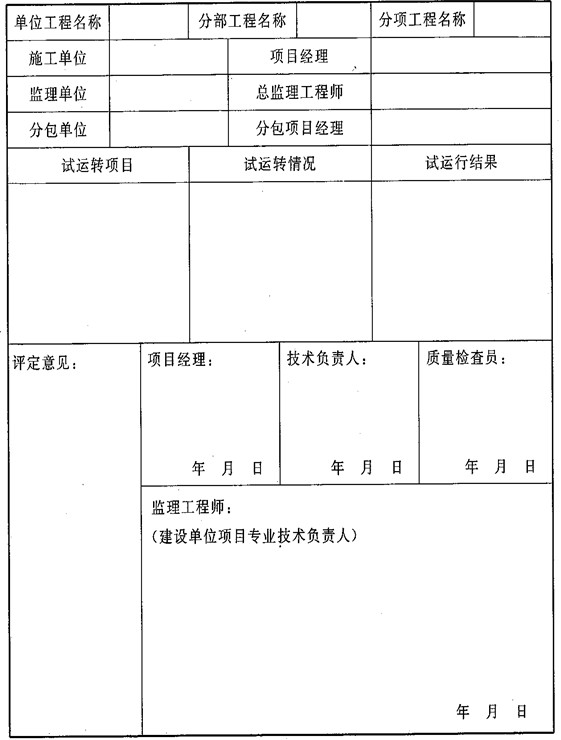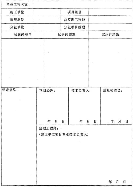 表D.0.2 無負(fù)荷聯(lián)動(dòng)試運(yùn)轉(zhuǎn)記錄