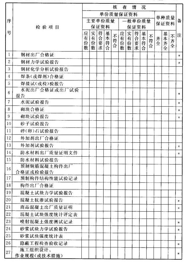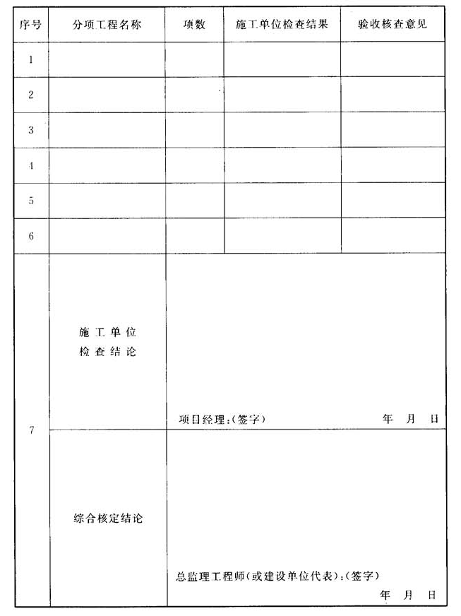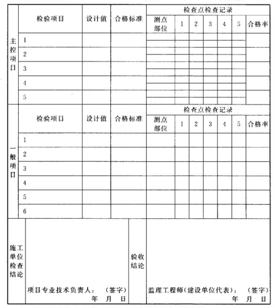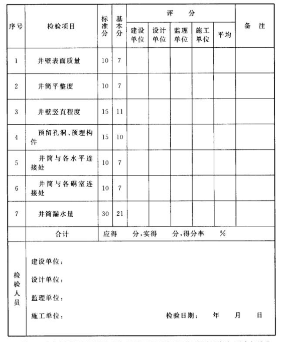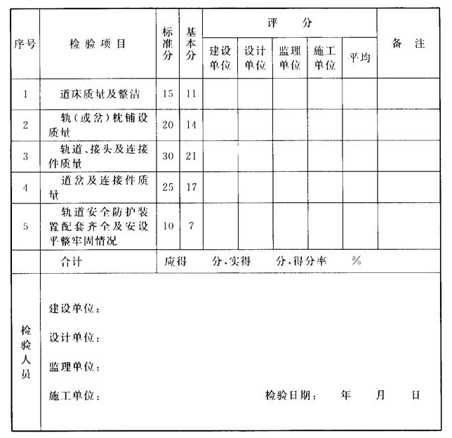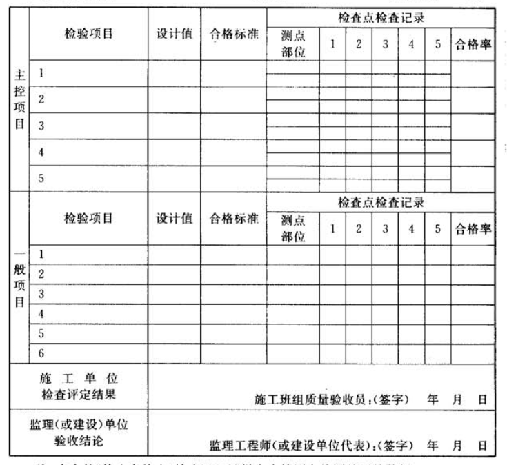 注:1 表中的“檢驗(yàn)項(xiàng)目”內(nèi)有缺項(xiàng)(或工程無該項(xiàng))時(shí),該項(xiàng)不檢驗(yàn)、不參加計(jì)分可不填入表內(nèi);