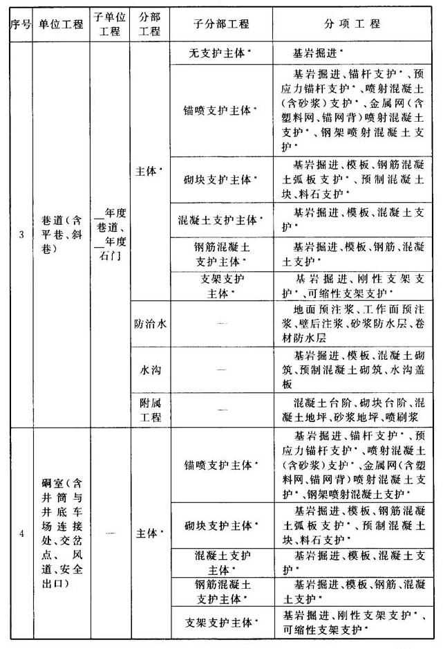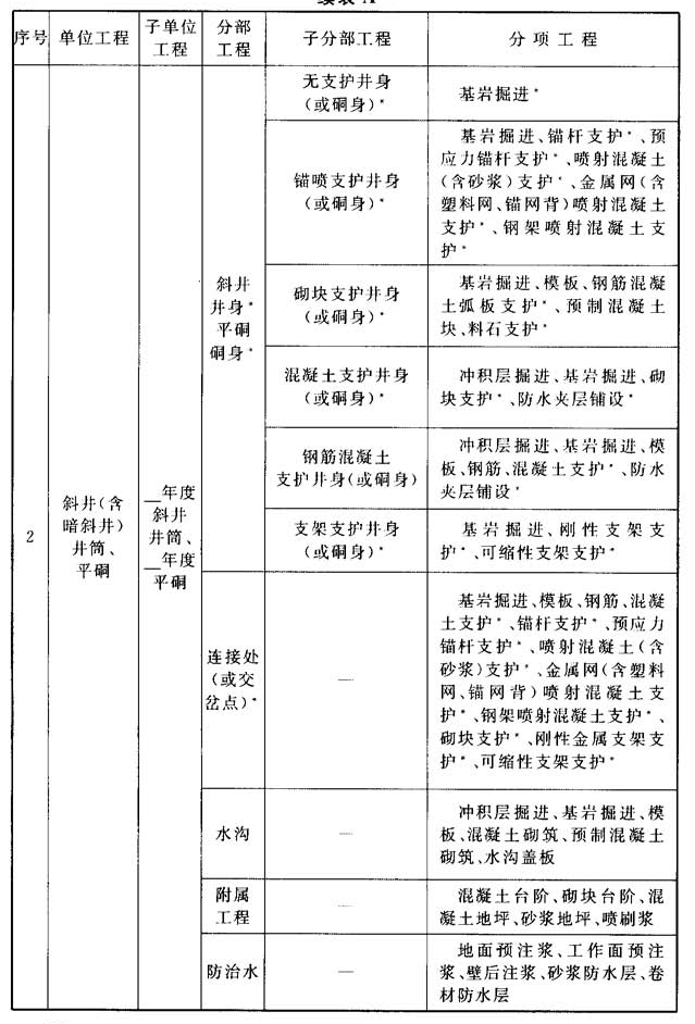 4.0.5 井巷工程的單位(或子單位)工程、分部(或子分部)工程、分項(xiàng)工程應(yīng)按本規(guī)范附錄A進(jìn)行劃分。