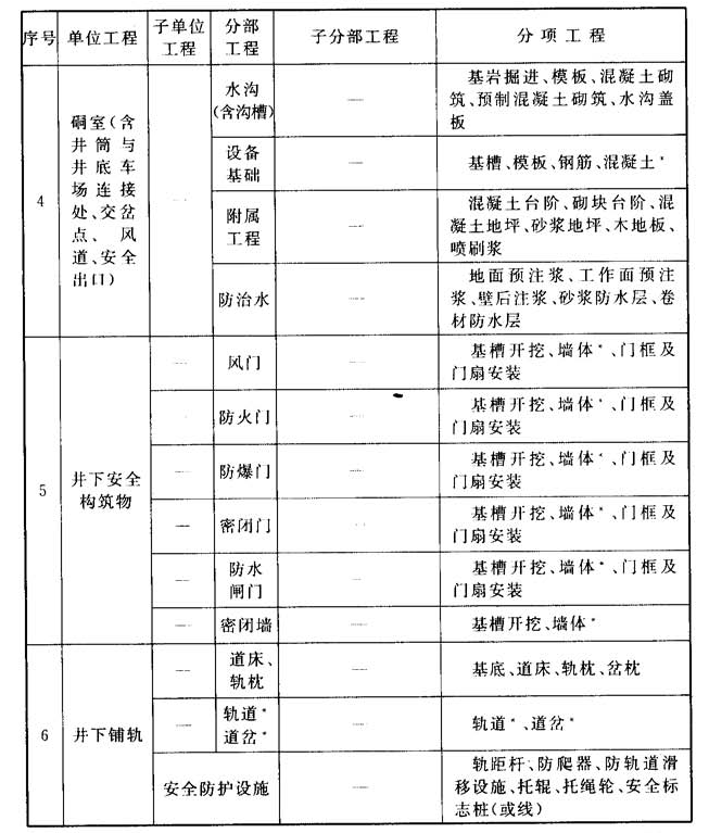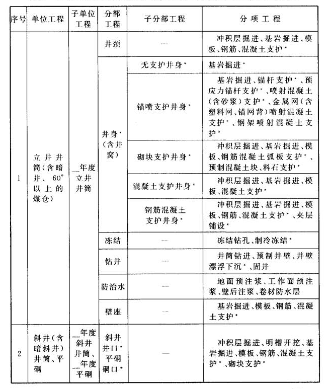 2 對于跨年度施工的井筒、巷道等單位工程,可按年度施工的工程段劃分為子單位工程。