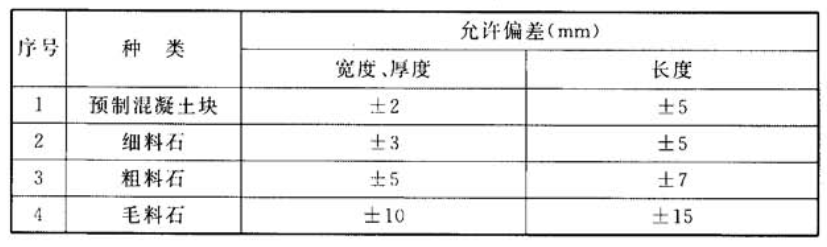 表D.0.3 預(yù)制混凝土塊和料石規(guī)格的允許偏差