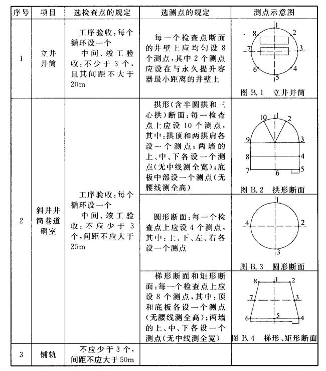5.0.1 煤礦井巷工程質(zhì)量驗(yàn)收應(yīng)按本規(guī)范附錄B的規(guī)定選點(diǎn)進(jìn)行驗(yàn)收。