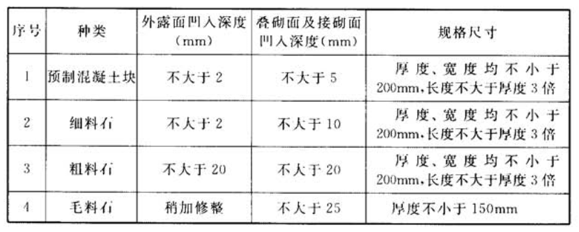 表D.0.2 預(yù)制混凝土塊和料石加工要求及規(guī)格