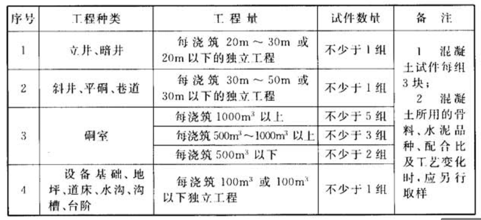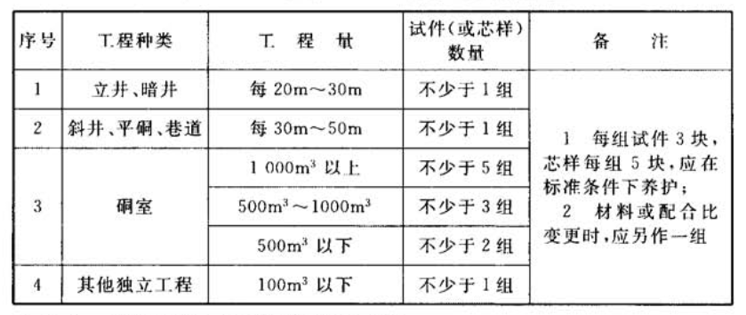 E.0.2 井巷支護(hù)工程混凝土強(qiáng)度應(yīng)按下列規(guī)定檢驗(yàn):