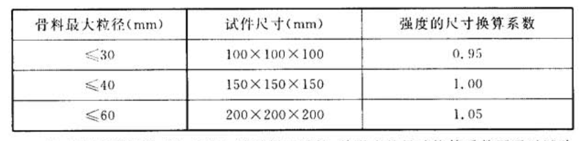 注:對強(qiáng)度等級為C60及以上的混凝土試件,其強(qiáng)度的尺寸換算系數(shù)可通過試驗(yàn)確定。