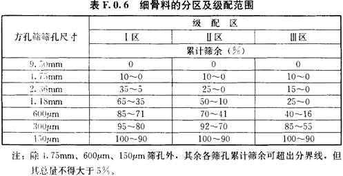 F.0.6 細骨料的分區(qū)及級配范圍應符合表F.0.6的規(guī)定。